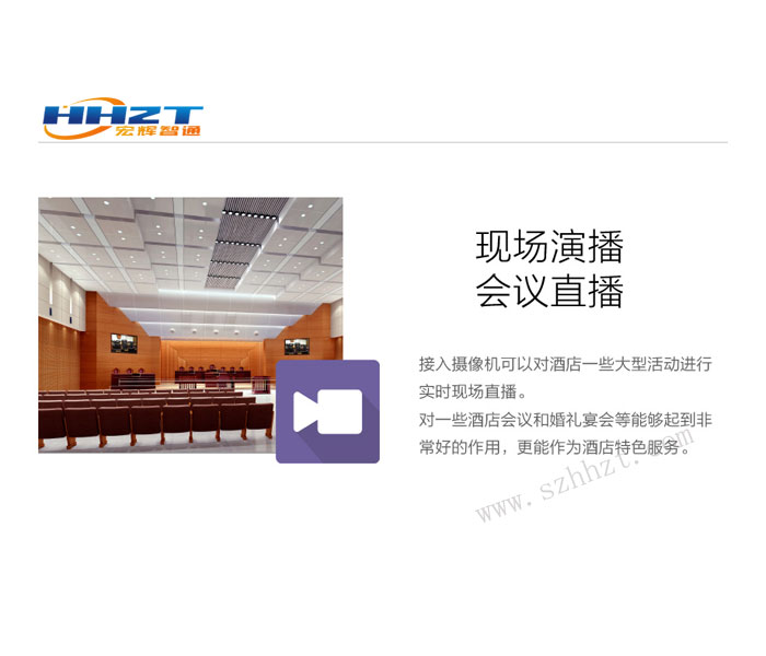 隨著科技和網絡的日新月異,“輝視通”的網絡IPTV機頂盒已經更新到最新的版本,它是一款帶有高清數字IPTV機頂盒:支持720p、1080p和1080i采用雙模接口,可以讓手機直接遙控酒店客房的電視,同時“輝視通”給每個房間實現動態獨立的wifi并且讓手機、pad、電視、都可以同時進行直播/vod點播/回放操作酒店的自帶服務(如續費、點餐、叫醒、請求打掃和退房等),讓客戶更好的體驗到酒店的服務。讓酒店真正達到“高端、大氣、上檔次”!