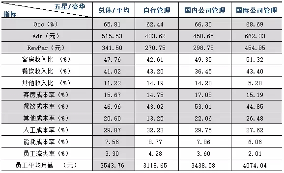 二:不同管理方式的豪華型飯店統計