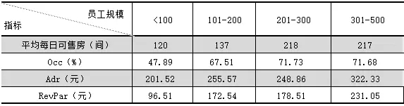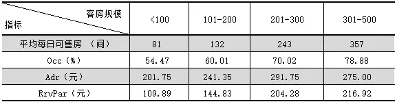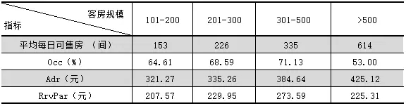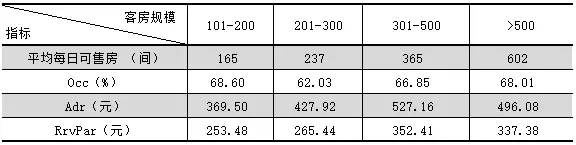 三:不同客房規模的豪華型飯店統計