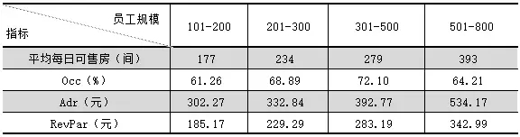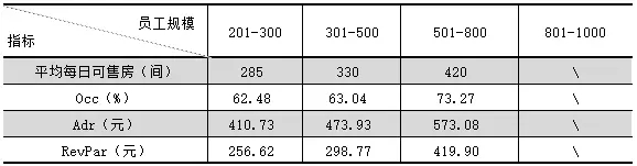 七:不同員工規模的高檔型飯店統計