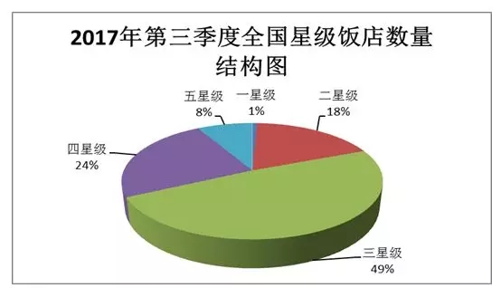 2017年第三季度,共有10065家星級飯店通過省級旅游主管部門審核,包括一星級飯店72家、二星級飯店1839家、三星級飯店4908家、四星級飯店2425家、五星級飯店821家。