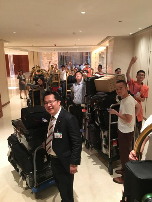 9月3日凌晨,110輛奔馳轎車,50輛寶馬轎車載著沙特代表團(tuán),還有15輛大卡車(每輛載重8噸)的生活物品,大至床墊、電視機(jī),小至牙刷、垃圾桶,浩浩蕩蕩從沙特來到杭州。加上之前先期到達(dá)的8輛大卡車,此次G20峰會沙特代表團(tuán)共有23輛卡車,共計184噸貨物。貨物和數(shù)量如此之多,對酒店前廳和禮賓服務(wù)是一次重大考驗。元氣滿滿的40位酒店員工,10輛板車,10輛行李車,來回40多趟,將所有物品搬運(yùn)到各指定場地。相關(guān)負(fù)責(zé)人介紹,“具象一點地說,當(dāng)天40人的微信運(yùn)動里,步數(shù)都高達(dá)20,000到30,000步。”