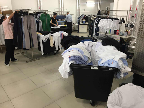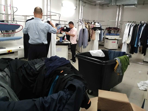 9月3日與9月4日,酒店的洗衣房迎來了自開業(yè)以來的巔峰時期,僅這兩天的收益就到達(dá)了平時1個月的水平。據(jù)悉,沙特代表團(tuán)在酒店期間,曾經(jīng)一間房有76件衣物需要清洗熨燙,堆放了整整一車。700多名代表共2000多件衣物被送至洗衣房。7個人24小時通宵工作,2臺機(jī)器16小時不間斷運(yùn)轉(zhuǎn),房務(wù)部、前廳部、人力資源部的同事都參與進(jìn)洗衣這項任務(wù)。相關(guān)負(fù)責(zé)人對記者表示,“夜間本來應(yīng)該安靜的洗衣房,在G20 期間真的是熱鬧非凡。洗衣房工作的流水線變得浩浩蕩蕩,從收客衣—清點—打標(biāo)簽—清洗—熨燙—折疊—衣物歸檔—送進(jìn)房間,好不壯觀!”