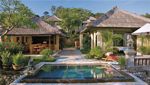 既然是蜜月酒店,浪漫程度肯定不必說。美麗的日出、蜿蜒的海灘、依山傍海、雕梁畫棟,這些都是金巴蘭灣四季酒店無可比擬的特色。酒店建在蔥郁的小山丘上,低頭就是擁有無比美麗日出的金巴蘭灣。別墅內(nèi)充滿巴厘島元素,卵石步道、彩繪木雕,還有散落在屋里的手工家具,處處散發(fā)當(dāng)?shù)貪庥舻奈幕厣?/p>