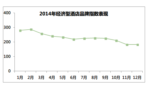 同質(zhì)化競(jìng)爭(zhēng)的現(xiàn)象,首先在經(jīng)濟(jì)型酒店市場(chǎng)品牌影響力中反應(yīng)出來(lái)。從圖上表單可看出,經(jīng)濟(jì)型酒店品牌在2014年,品牌指數(shù)呈現(xiàn)總體下降的趨勢(shì)。這當(dāng)中除了部分優(yōu)秀、發(fā)展成熟的品牌外,多為后進(jìn)入市場(chǎng)的后來(lái)者。