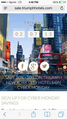 比如Triumph Hotels,他們發現酒店的其中一個客戶群體是帶著紐約旅行夢想的,因此,酒店特意推出了相關套餐,并以此為口號:“紐約夢倒計時”。