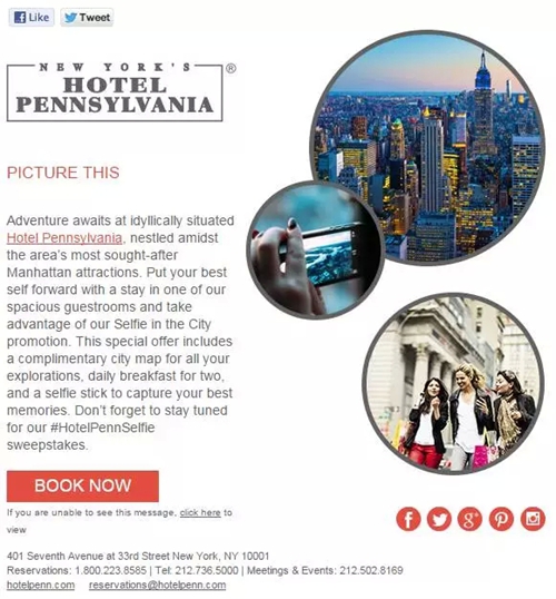 比如前文已經提到的Hotel Pennsylvania嘗試以自拍話題來抓住國際旅行者。