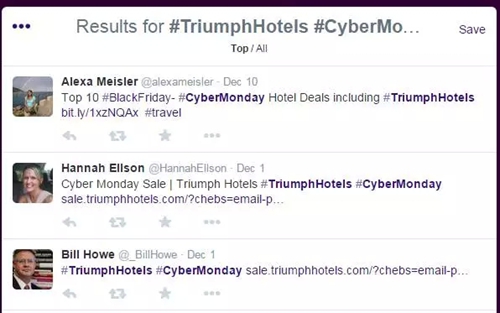 Triumph Hotels Cyber Monday 活動在推特上的互動
