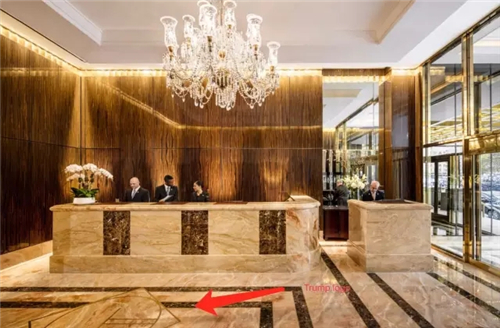 最直接的感受就是你一進大堂的炫光金燦燦和 Trump logo。