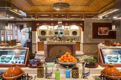 這是馬拉喀什麥地那的第一家利雅德酒店,2001 年開始開設烹飪班,他們是整個王國里第一家開設烹飪課程的酒店。這家酒店以其細膩醇厚的辣味燉菜,帕斯蒂亞餡餅和粗麥粉聞名。這家酒店的食物非常棒,也已經(jīng)出版了兩本烹飪書。酒店老板在老城區(qū)外的有機花園配有高科技設備。酒店的 Dadas(傳統(tǒng)摩洛哥風味菜式女主廚)教授半天的烹飪課程,她們的烹飪秘訣都是從自己的祖母那里學來的。16 個工作臺上每一個都配有一個顯示器,所以客人可以看清主廚手上動作的特寫,他們也學著準備自己的午飯。幾個月前,沿著酒店所在的大街的不遠處,他們開了另一家烹飪工作室,專門開設一小時的燉菜快速烹飪課程。