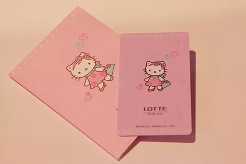 足以讓所有少女心炸裂的Hello Kitty房卡是韓國濟州樂天酒店的主題房專屬,不能帶走滿房的Kitty裝飾物,那么“私藏”一張小小的房卡還是被允許的。