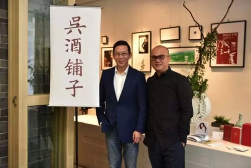 酒店進門就有吳酒(吳曉波電商生意的產品)精巧地擺放了一柜臺。柜臺后,掛著吳曉波的照片、名言以及書作封面。亞朵宣稱,這是「行業打開通往社群經濟商業模式的新入口」,與吳曉波合作,共享社群價值。