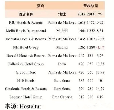 除了提高連鎖酒店的形式以及擴大客房數量以外,酒店集團的利潤收入數據變化量也同樣可以非常重要, 以下是西班牙根據收入水平排名前10的酒店集團.