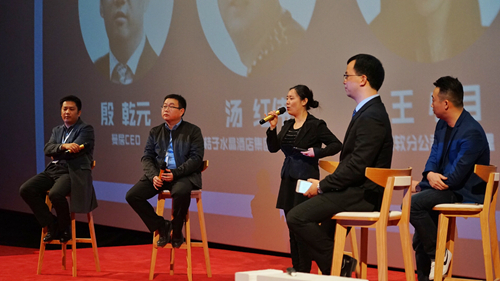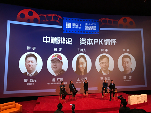 開元集團(tuán)曼居CEO殷乾元、桔子水晶酒店集團(tuán)華東區(qū)副總經(jīng)理湯紅偉、杭州西軟信息技術(shù)有限公司北京分公司運營副總經(jīng)理王小月、憶泊創(chuàng)始人周洋、栢高酒店集團(tuán)總裁王松志中端辯論:資本PK情懷。