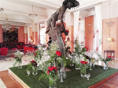 馬拉喀什的東方文華酒店,簡直就是一座花園。這家酒店給記者的印象是以白色、綠色為主調。餐桌布是白色的,上面擺放著新鮮的結著橄欖的枝葉和黃的綠的檸檬,雖然北非正午的日頭又毒又烈,但在白色的遮陽傘下,這清新的顏色,加上不遠處碧藍的池水,心立馬靜了下來。可能是受摩洛哥傳統建筑的影響,一進門,大廳中央一定是一池水,圍繞著池水就餐。因而我們在文華和四季酒店用午餐時,都是在室外,離游泳池不遠。雷迪森酒店的室外就餐區也在泳池旁邊。文華酒店的客房是別墅型,每棟與每棟之間種滿了各種綠植,仙人掌最多,就像進了植物園。每棟房子的墻頭爬滿了五顏六色的花朵,伸手可觸,更設計了幾處鮮花肆意招展的甬道,惹得我們紛紛拍照,竟一時忘了這里是酒店。